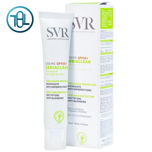 Kem chống nắng SVR Sebiaclear Creme SPF50+ là sản phẩm đến từ thương hiệu dược mỹ phẩm SVR nổi tiếng của Pháp. Sản phẩm được thiết kế đặc biệt dành cho da dầu, da nhạy cảm, kết hợp hiệu quả chống nắng và dưỡng da, giúp bảo vệ làn da khỏi tác hại của tia UV đồng thời làm giảm các khuyết điểm như mụn, thâm, và kiểm soát dầu nhờn.
