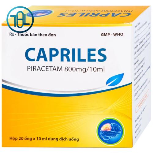 Capriles 800mg/10ml là thuốc tăng cường tuần hoàn não, chứa hoạt chất chính là Piracetam 800mg trong mỗi ống 10ml. Thuốc được chỉ định để điều trị một số vấn đề liên quan đến suy giảm chức năng não.